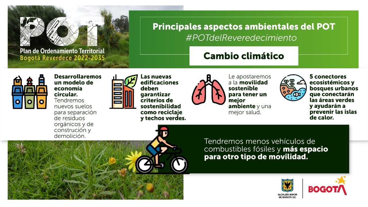 Este POT busca la articulación del ordenamiento territorial de la ciudad con las medidas adoptadas en el Plan de Acción Climática (PAC), lo que permitirá a la ciudad adaptarse y mitigar los efectos del cambio climático.