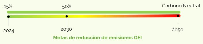 Las metas de mitigación en Bogotá están definidas en tres periodos. La ciudad trabajará para que en 2024 las emisiones de GEI estén un 15 % por debajo del nivel del escenario BAU; en 2030 sean del 50 %, con respecto al mismo escenario, y en 2050 la ciudad sea carbono-neutral. Estas metas se van a cumplir por medio de la implementación de las acciones de mitigación identificadas..
